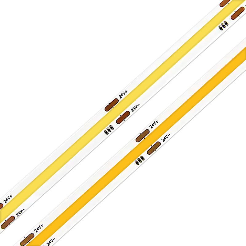 LED燈帶:由獨立的、呈點狀的SMD LED燈珠,通過串聯(lián)或并聯(lián)的方式,固定在柔性電路板上。每個燈珠都是一個獨立的發(fā)光單元。COB燈帶:將多個微型LED芯片直接集成封裝于一塊長條形基板上,形成一個連續(xù)的、面狀的發(fā)光體。芯片排列密集且緊密相連